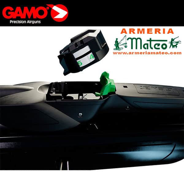 El sistema 10X Quick-Shot es una tecnología exclusiva GAMO, pendiente de patente, que permite disparar 10 balines con el solo abatimiento del cañón. El tirador sólo necesitará abatir el cañón y disparar, ganando el tiempo de coger otro balín y tener que introducirlo en la carabina cada vez. “10 TIROS SIN TOCAR UN BALÍN”