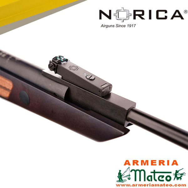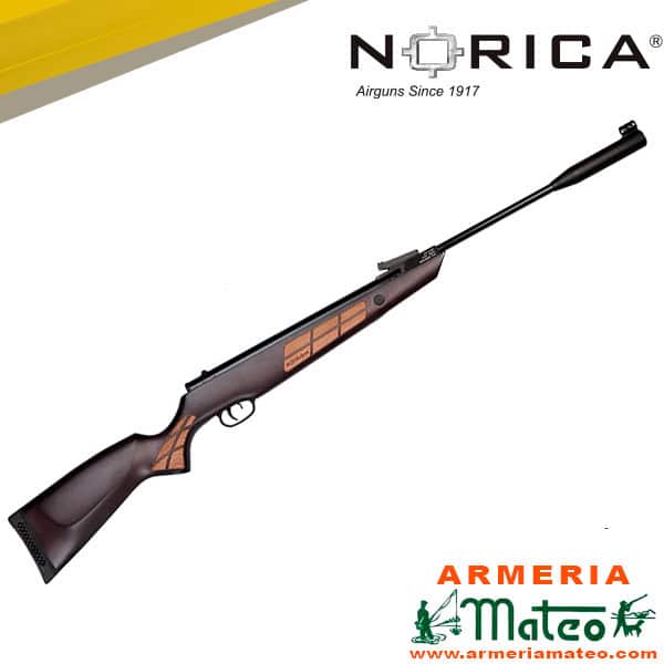 La Norica Black Eagle. «Aguila Negra». Considerada uno de los modelos más elegantes gracias a su madera de haya tintada en color negro y el natural de la madera en la empuñadura «posa-manos». Muy precisa y potente, destaca su disparador regulable y moderador de sonido.