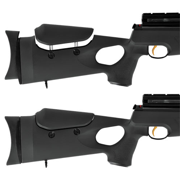 - Carabina de Aire Pre-comprimido (PCP), de 10 disparos, carga manual, acción de palanca lateral.