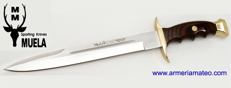 Cuchillo con puño asta de ciervo y roseta con defensa de latón y acero inoxidable.