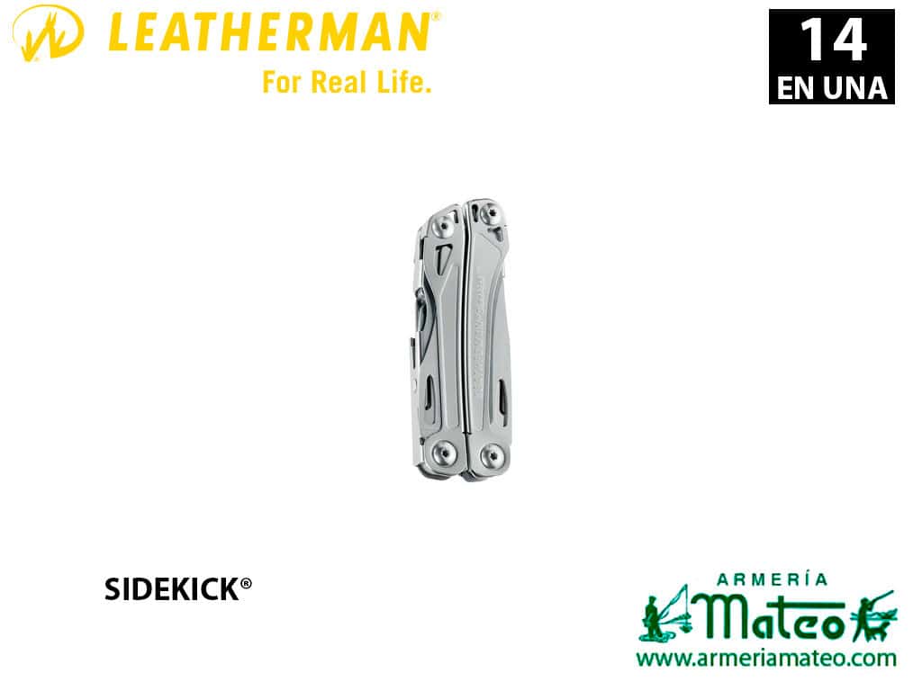La Multiherramienta LEATHERMAN SIDEKICK, fabricada con acero inoxidable 420HC. Con sus 14 usos tiene todo lo que necesitas para poder hacer realidad tu proyecto. El sistema de apertura con una mano de Leatherman, que permite abrir el cuchillo con la herramienta cerrada y sus cachas redondeadas hacen que sujetar los nuevos alicates de apertura con muelle sea muy fácil y cómodo.